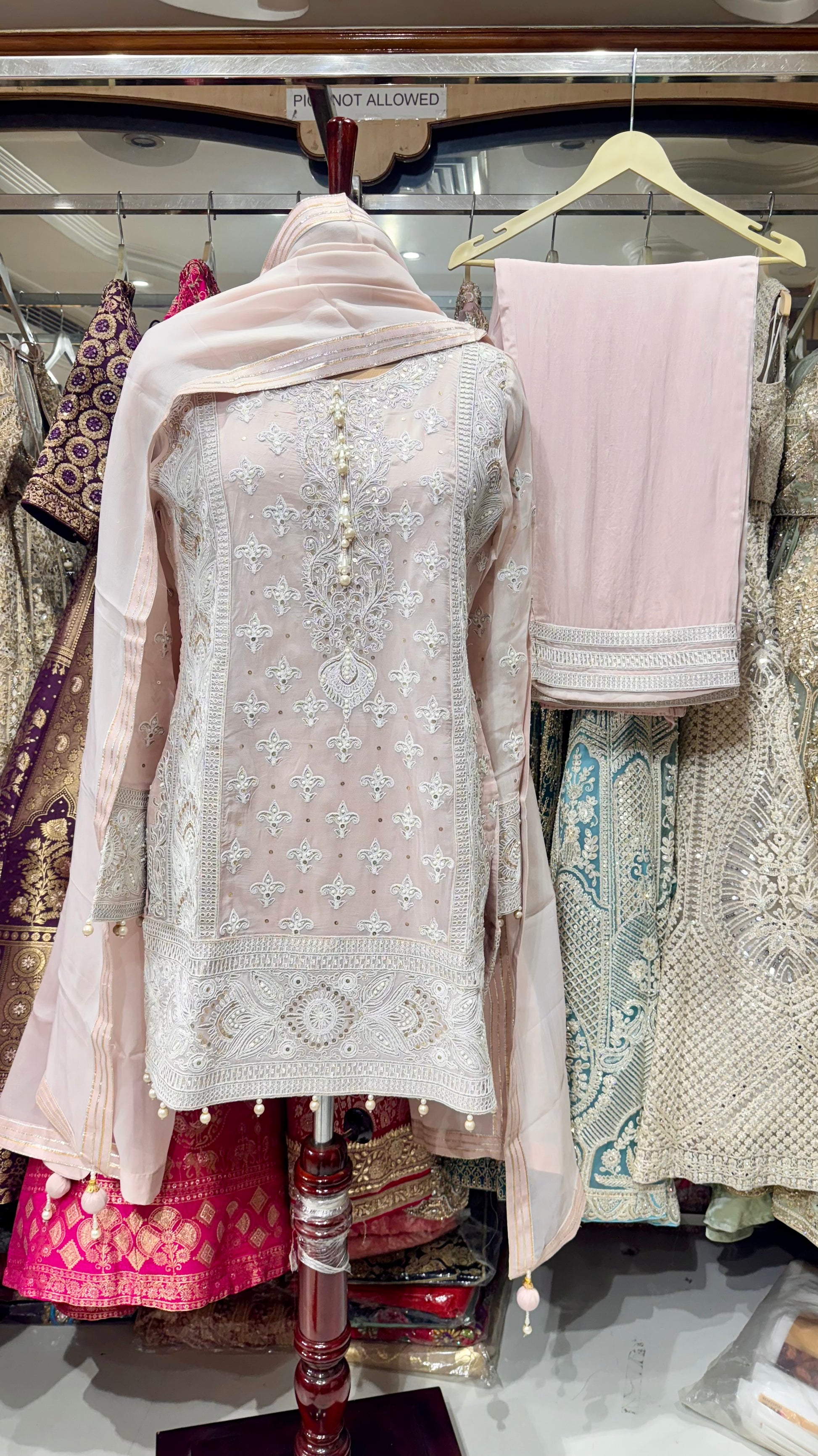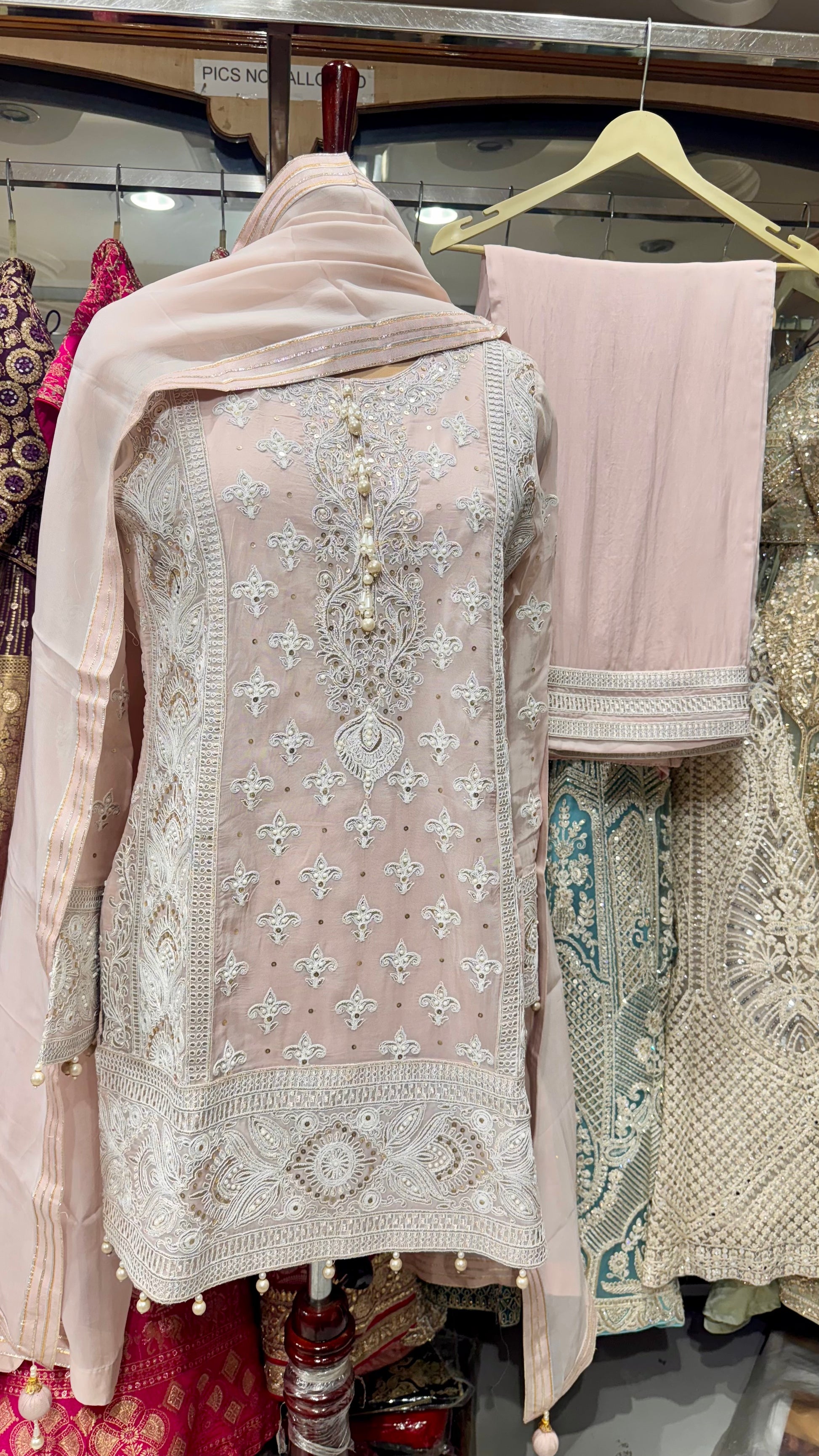 Blush Glam Organza Pants Suit Set with Luxe Embroidery & Pearl Drops