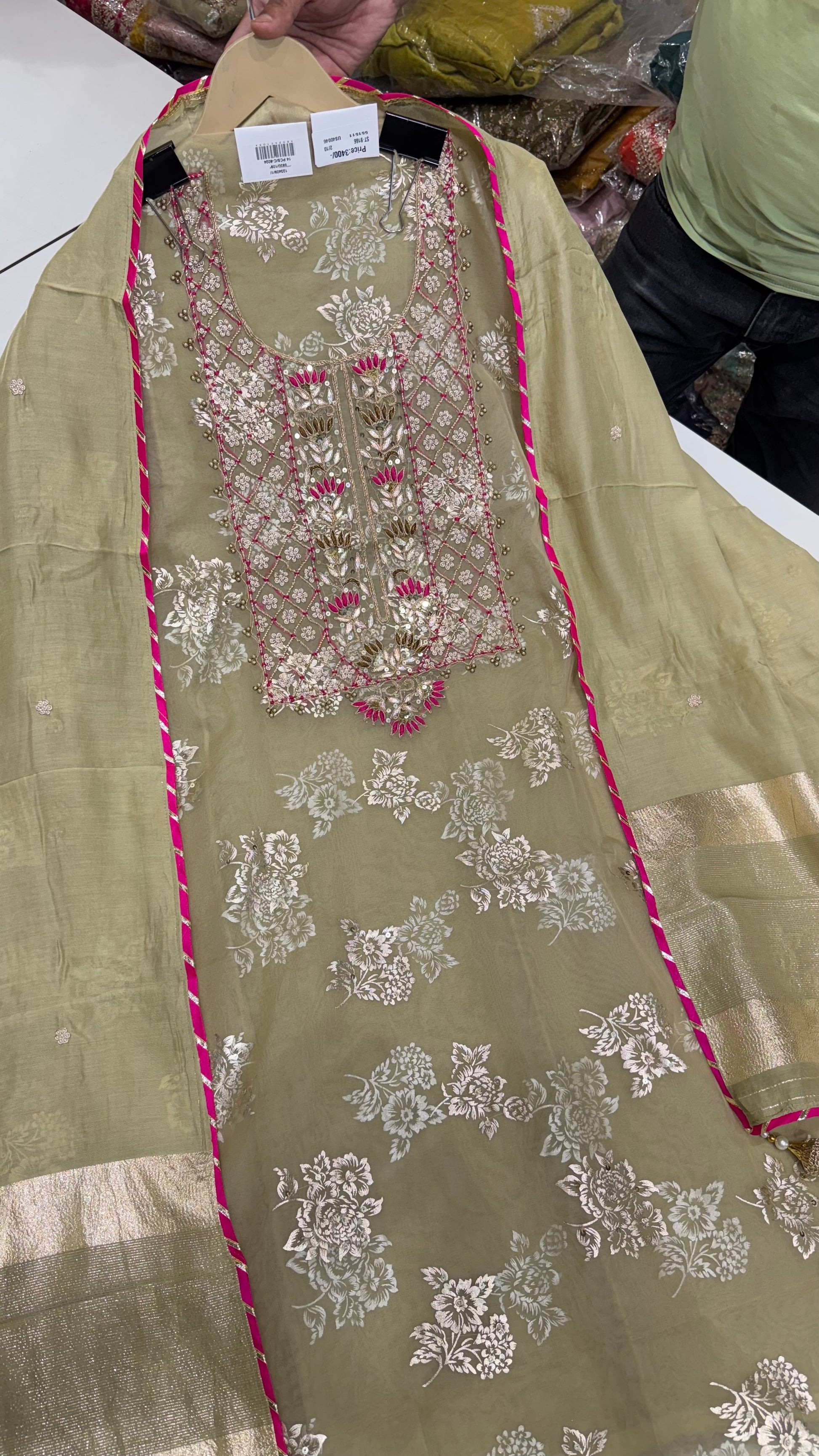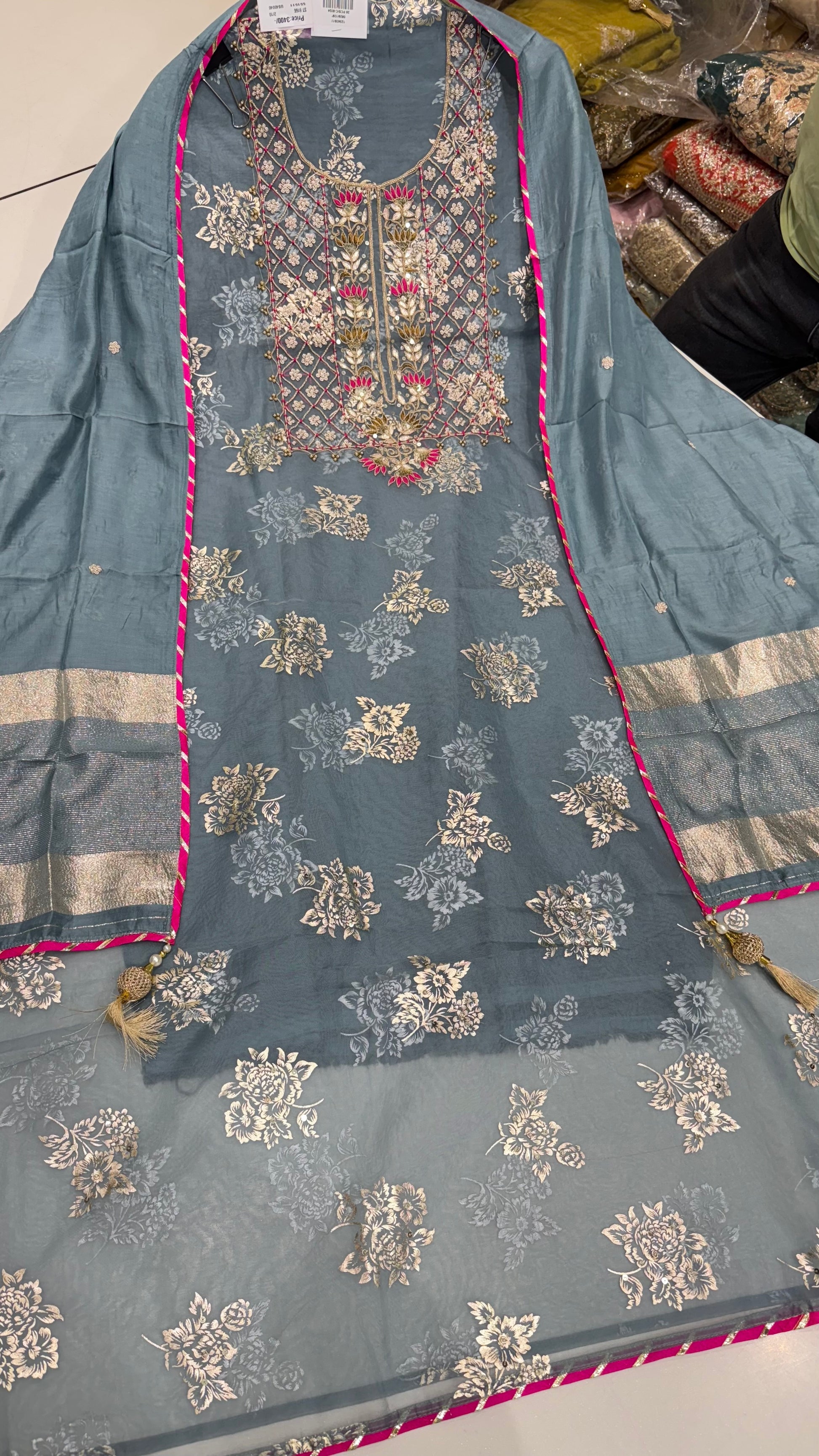 - Fabric: Pure Organza shirt with Muslin dupatta