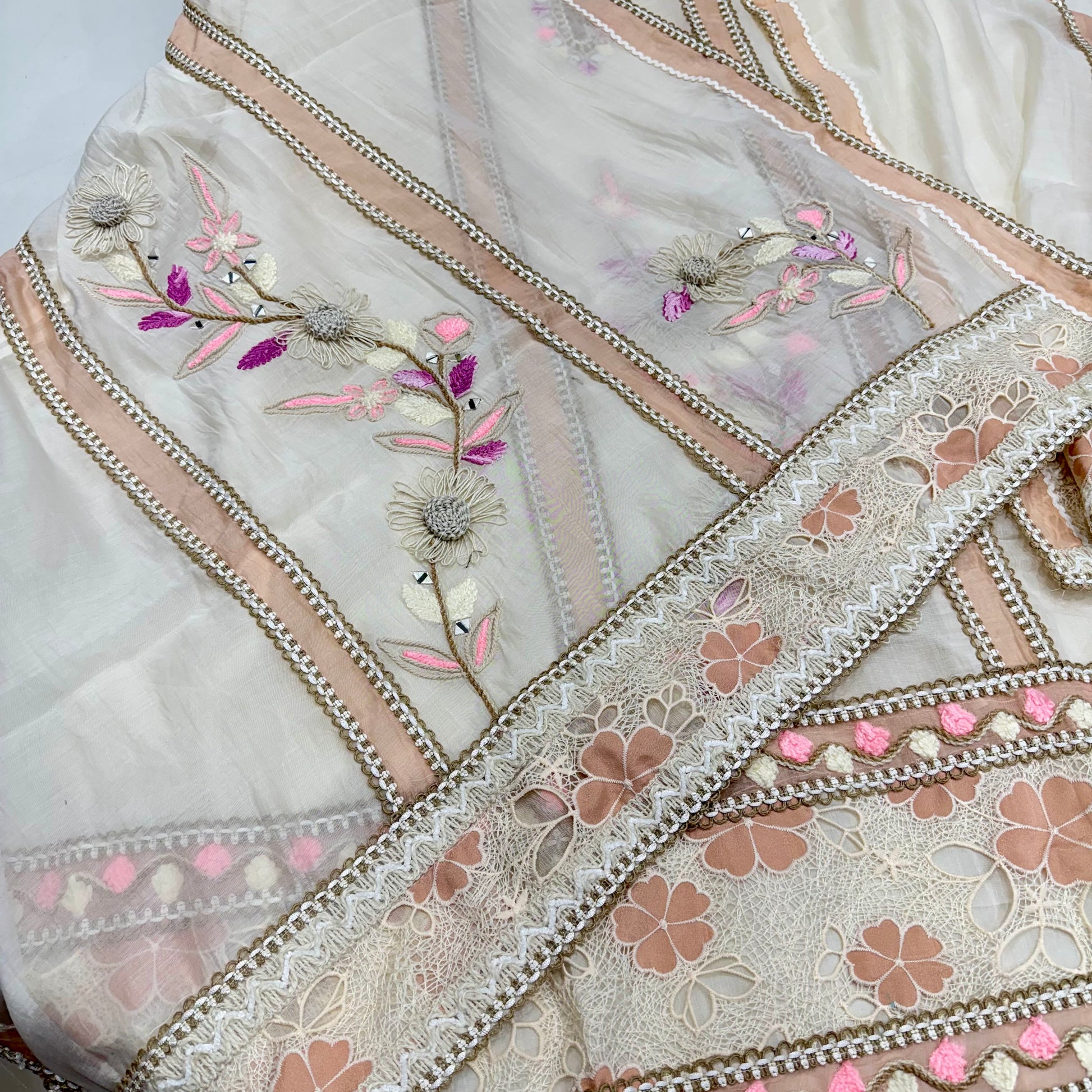 Elegant Cream Pure Mul Mul Cotton Hand Embroidered Suit Set