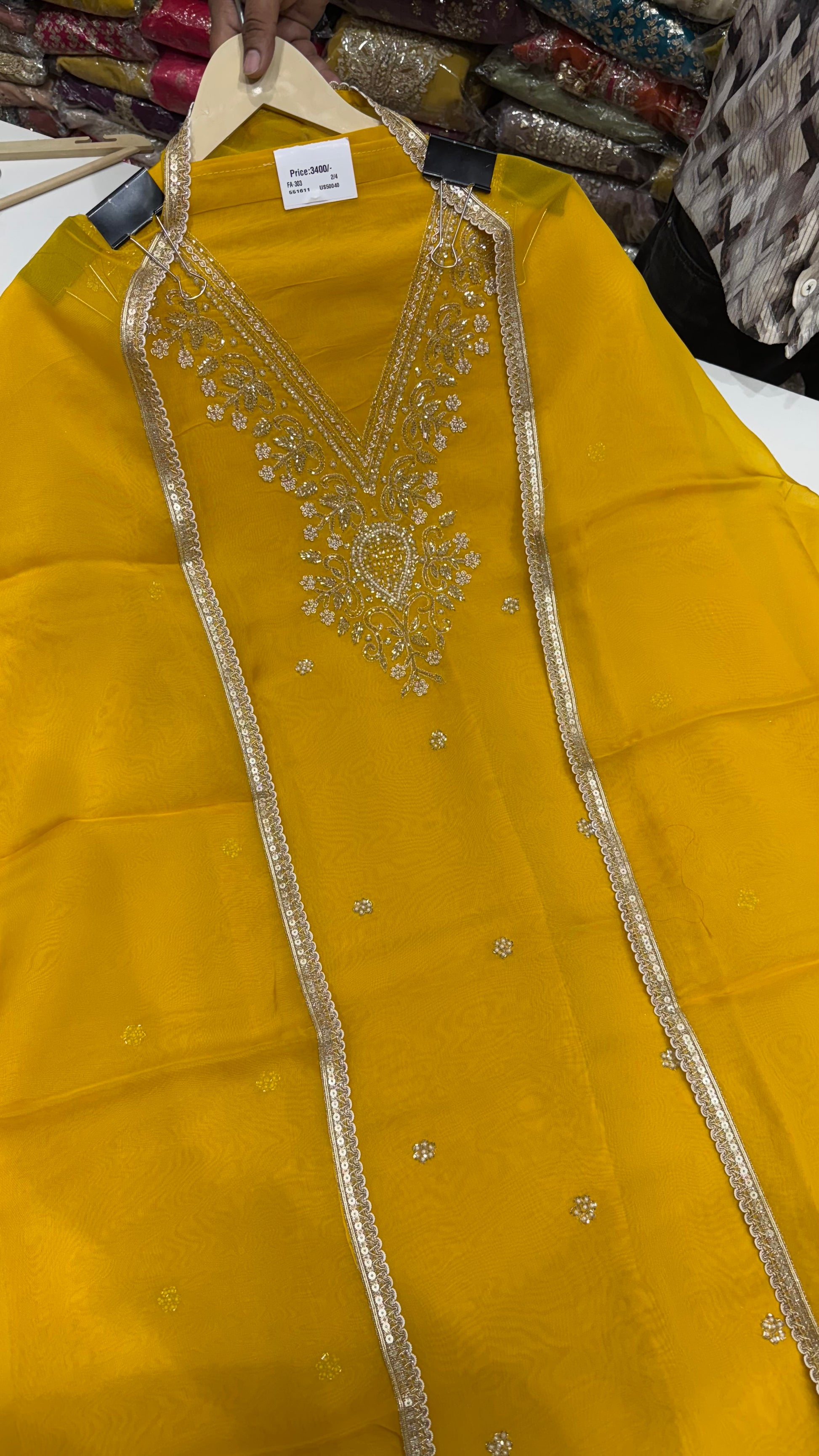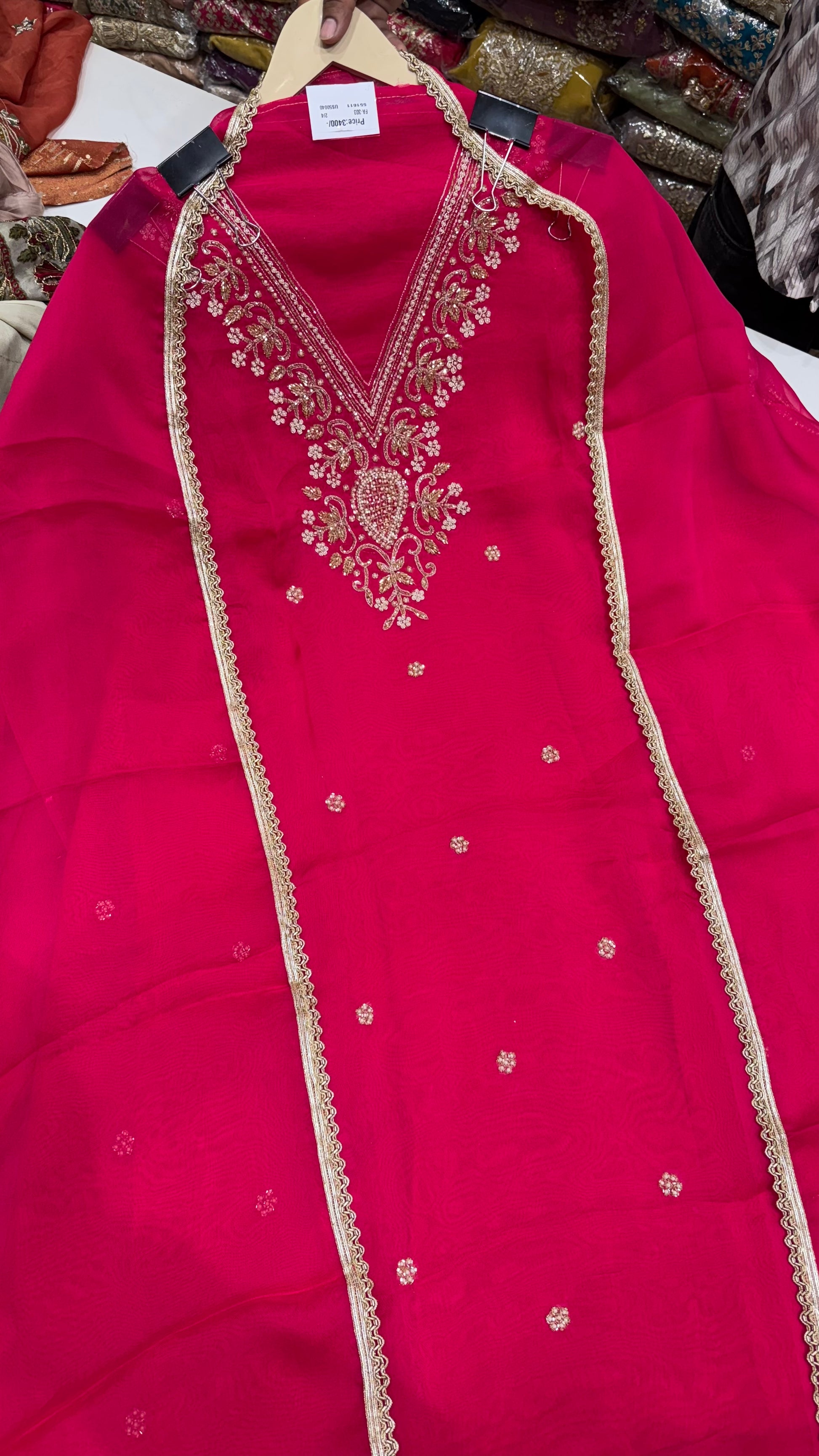 Elegant Pure Organza Hand Embroidered Unstitched Suit
