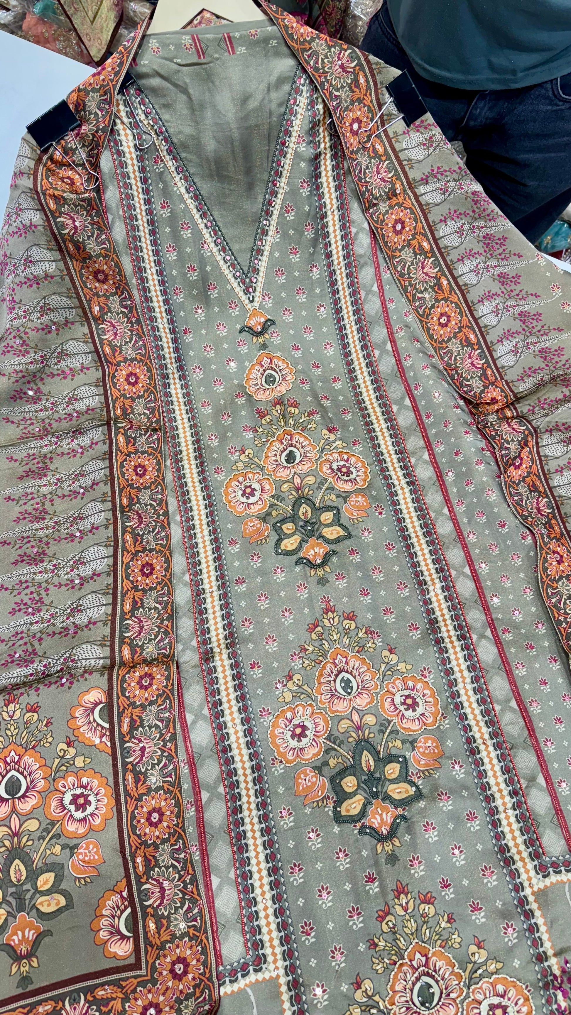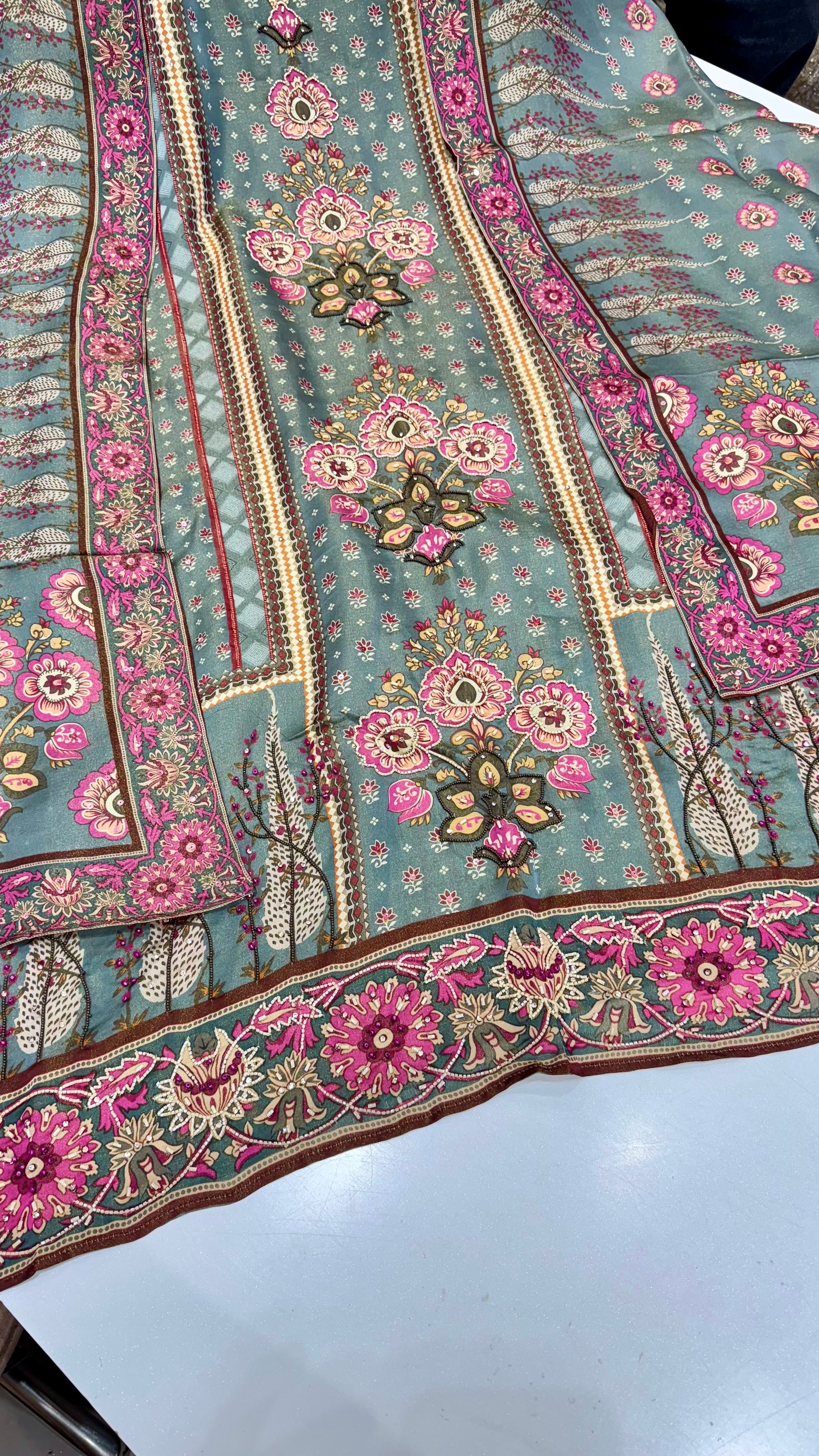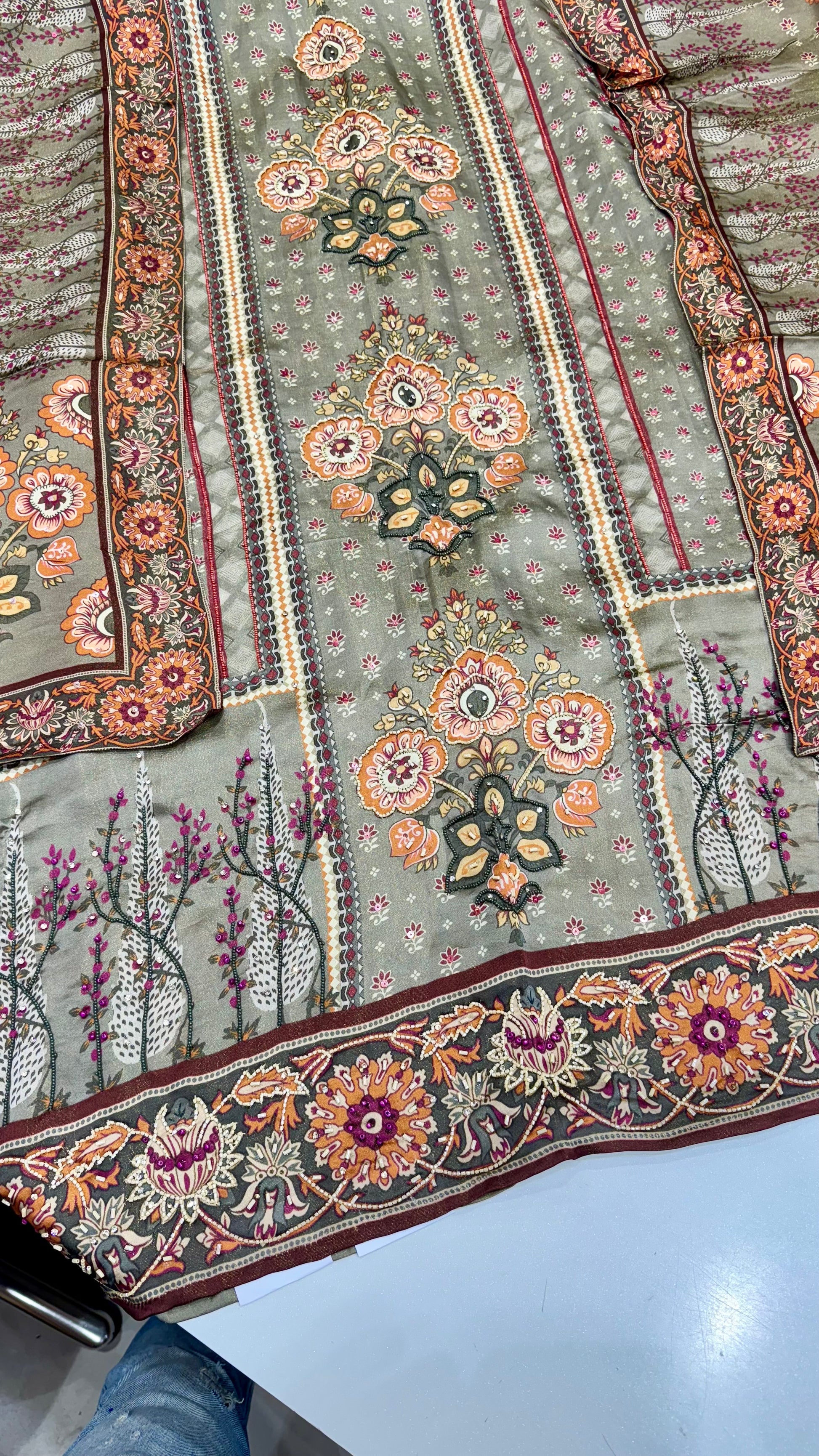 - Dupatta: Matching Pure Satin Silk Dupatta with coordinated print and embroidered borders