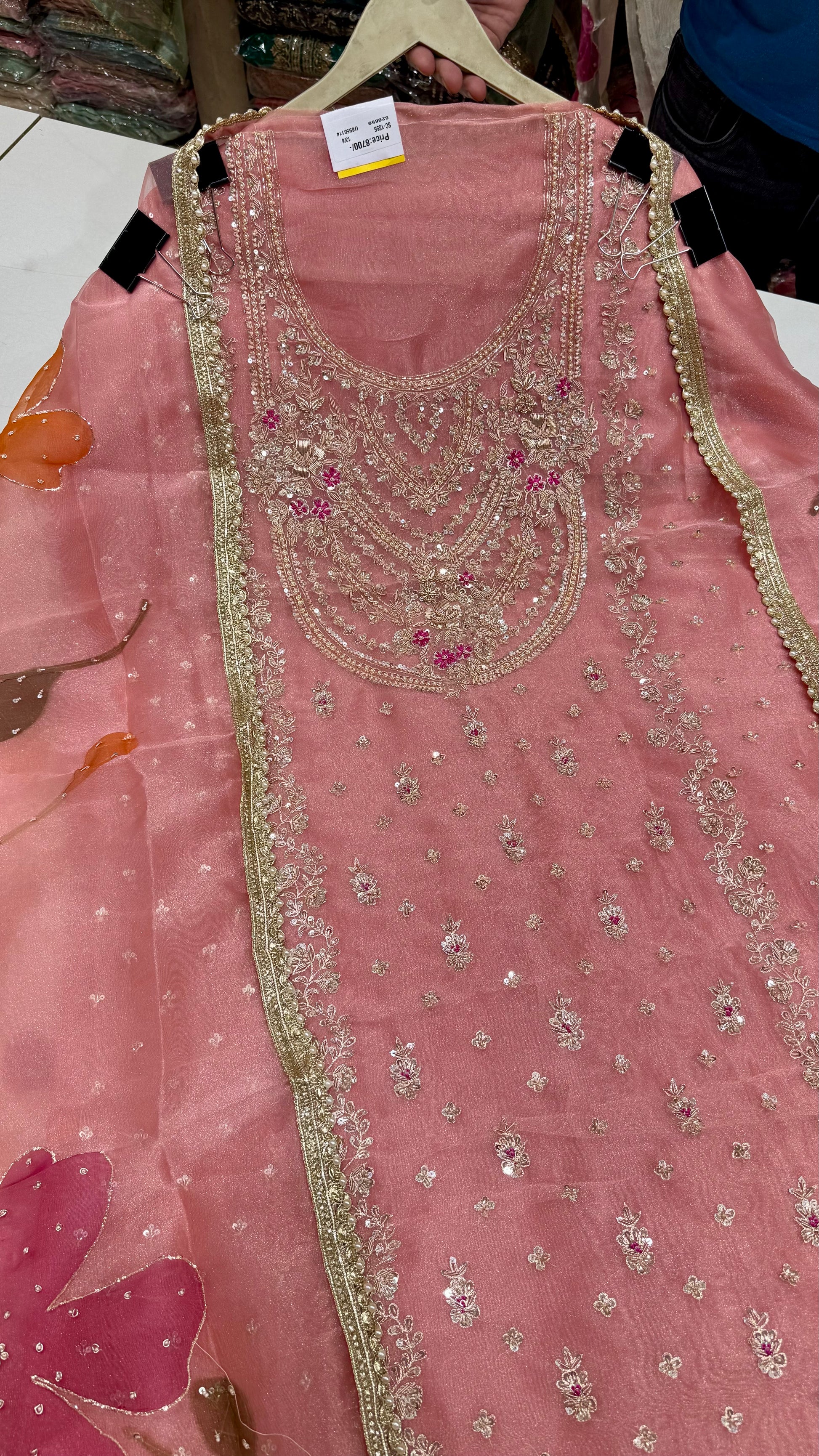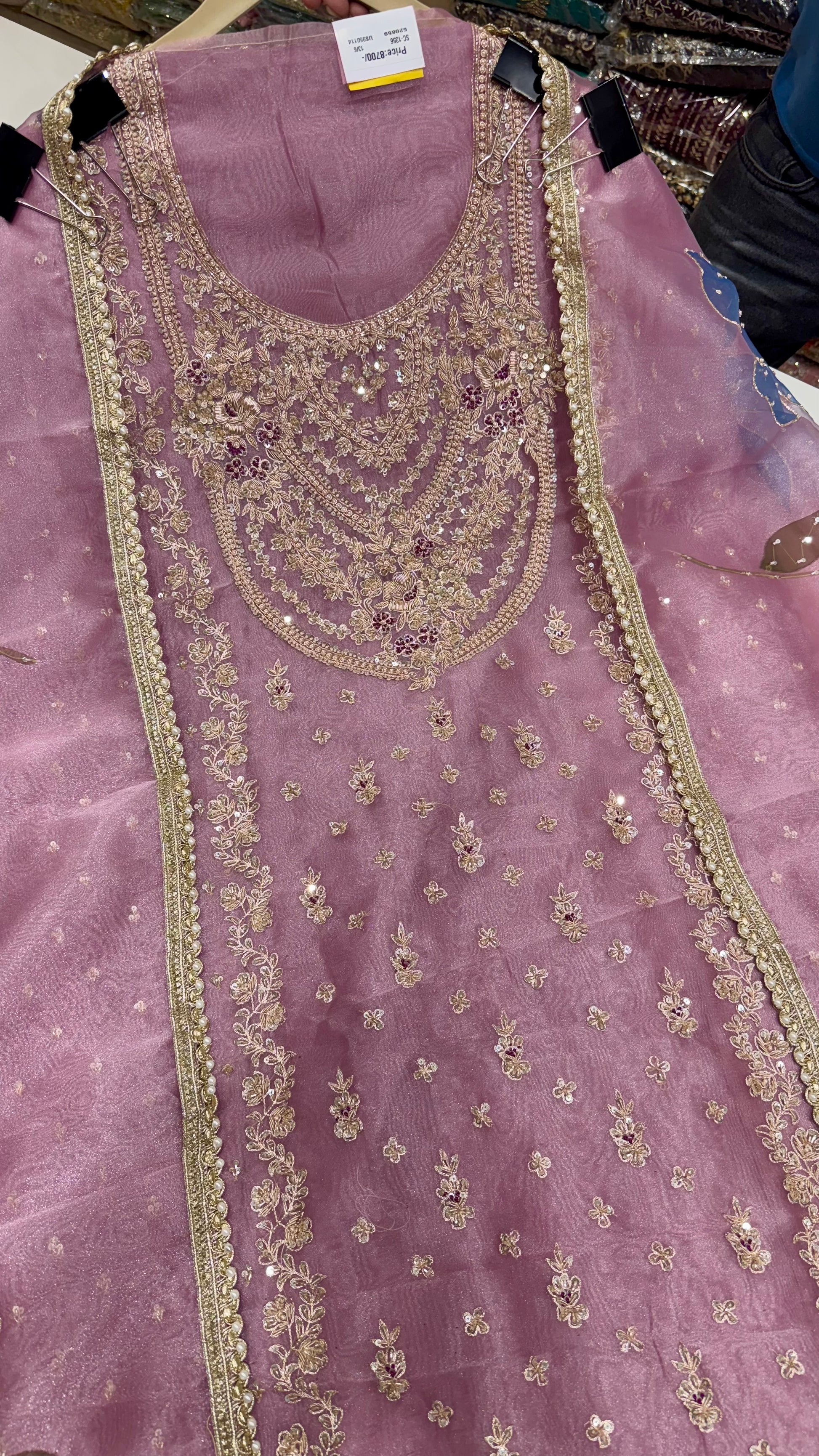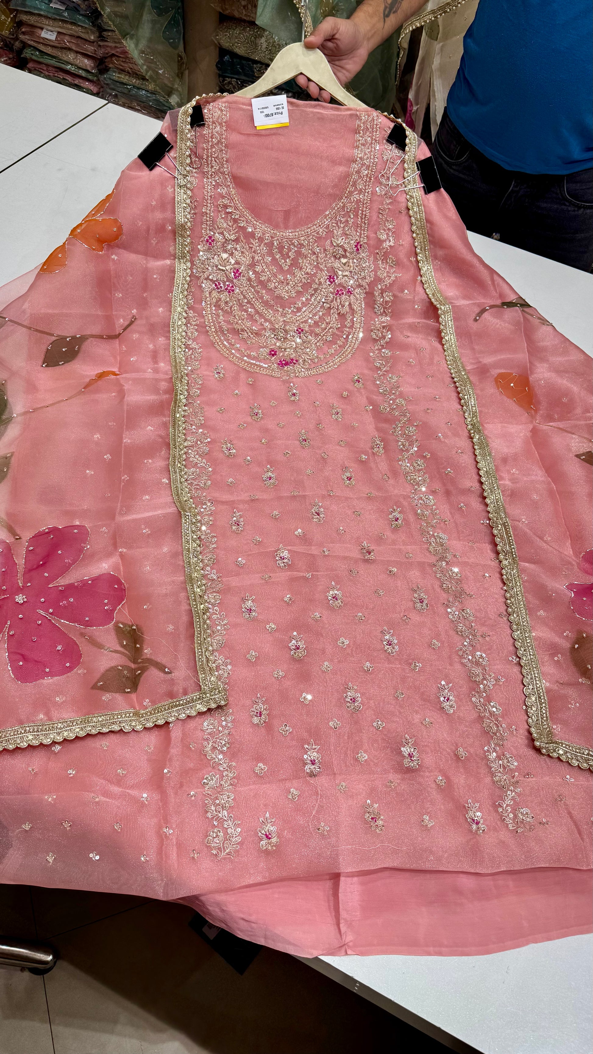 Glass Organza Unstitched Suit with Heavy Zardozi Hand Embroidery