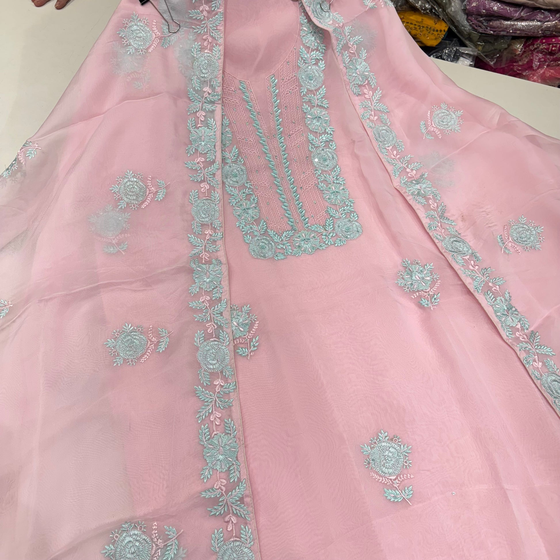 - Fabric: Premium pure organza for top and dupatta, soft pure crepe bottom (2.5 meters)