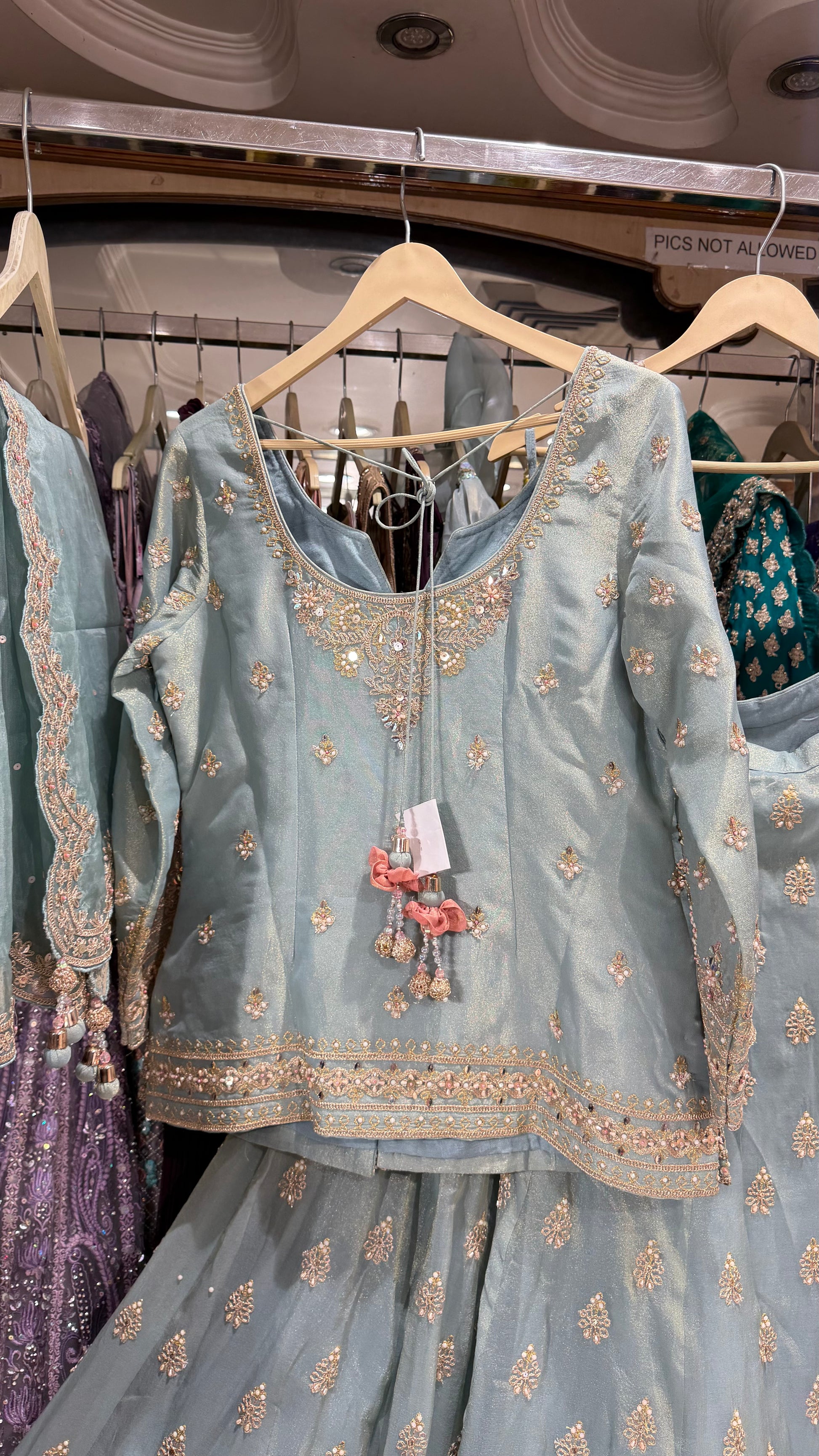Pure Tissue Handwork Lehenga kurti