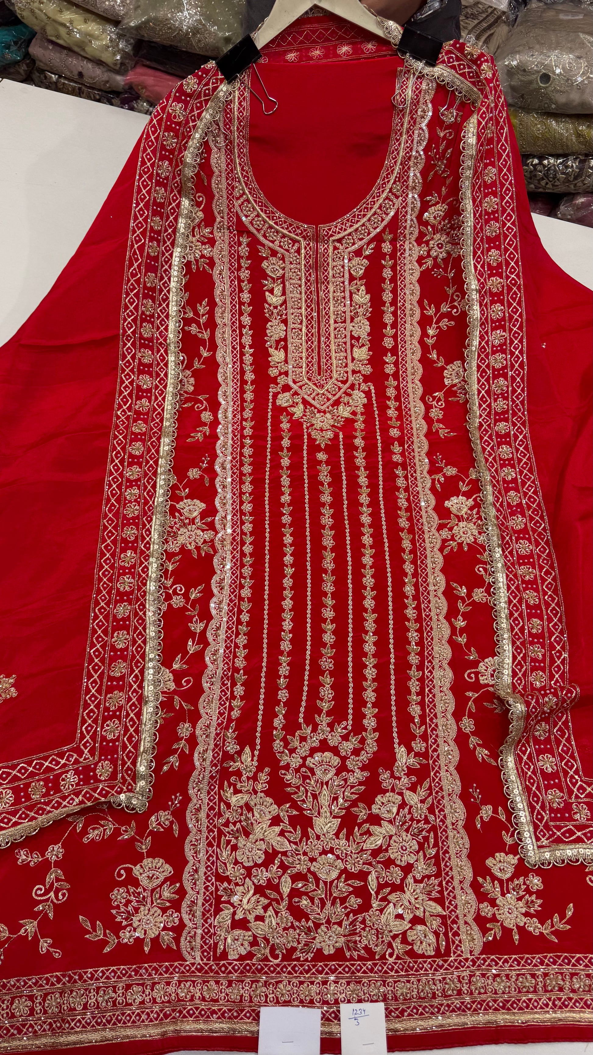 - Heavy zardozi & dabka handwork with intricate floral and panel detailing