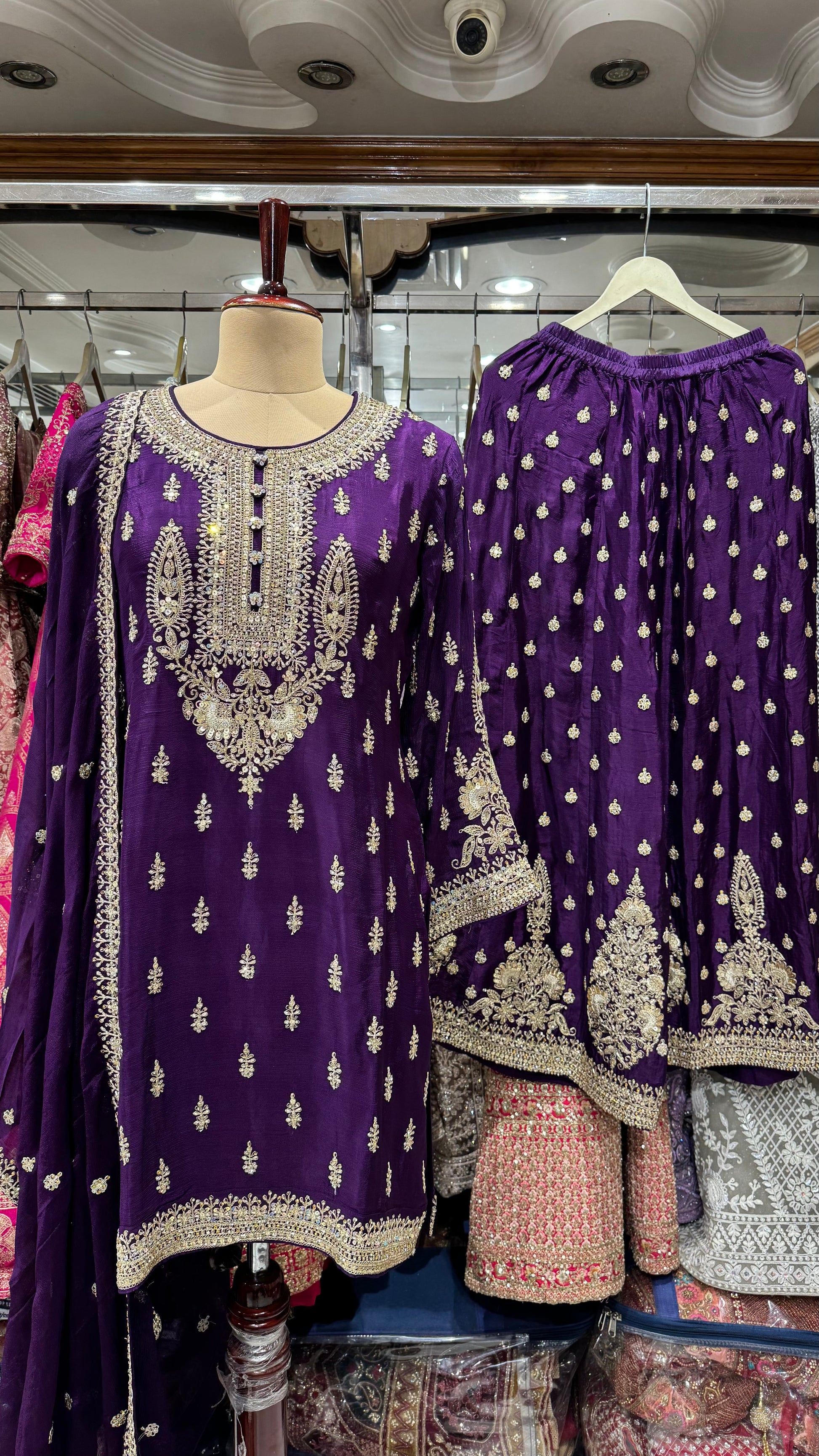 • Fabric: Luxurious Pure Chinon shirt, dupatta, and sharara for an elegant drape and premium finish.