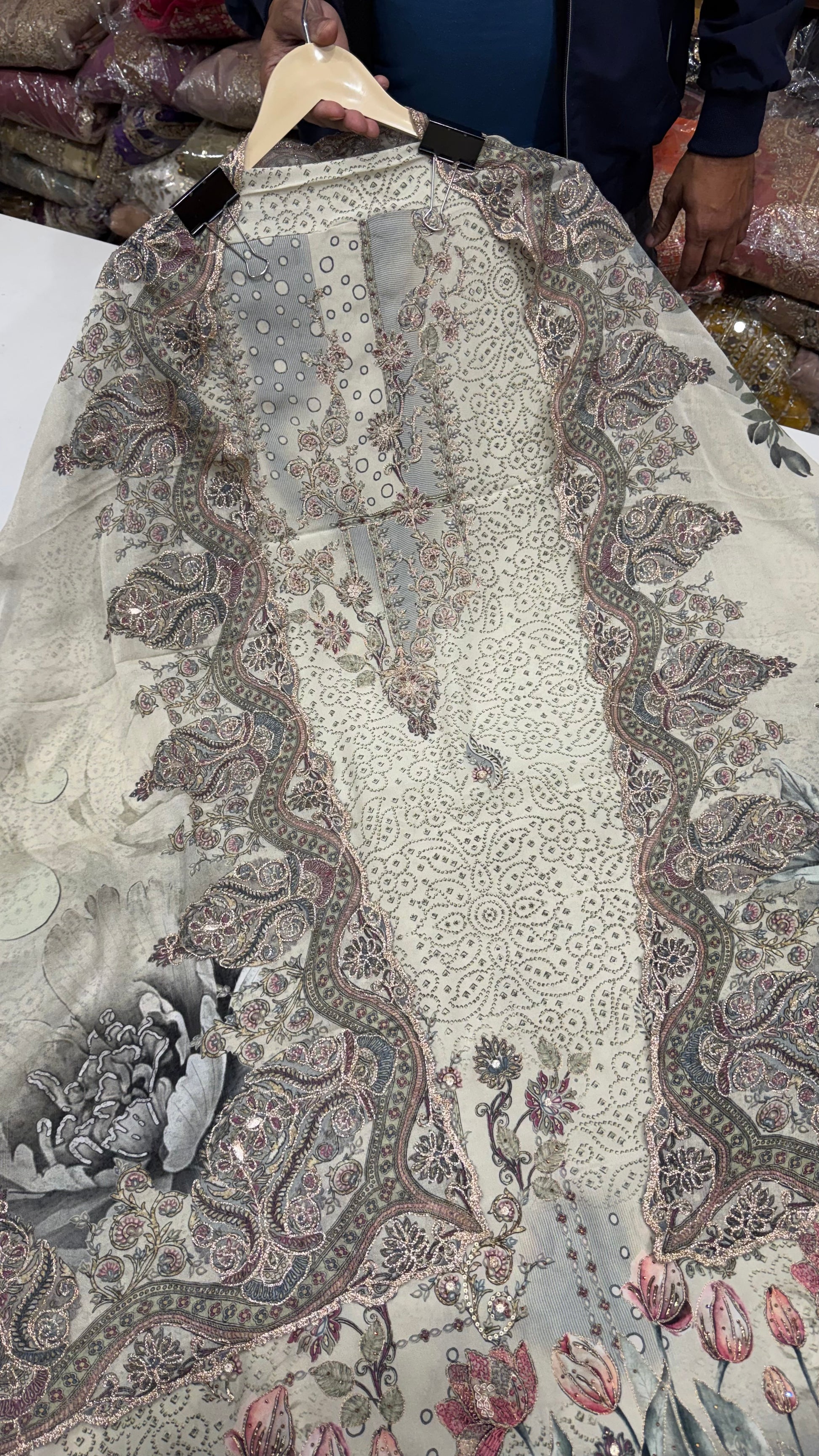 Sabyasachi Inspired Pure Crepe Digital Print Unstitched Suit Set