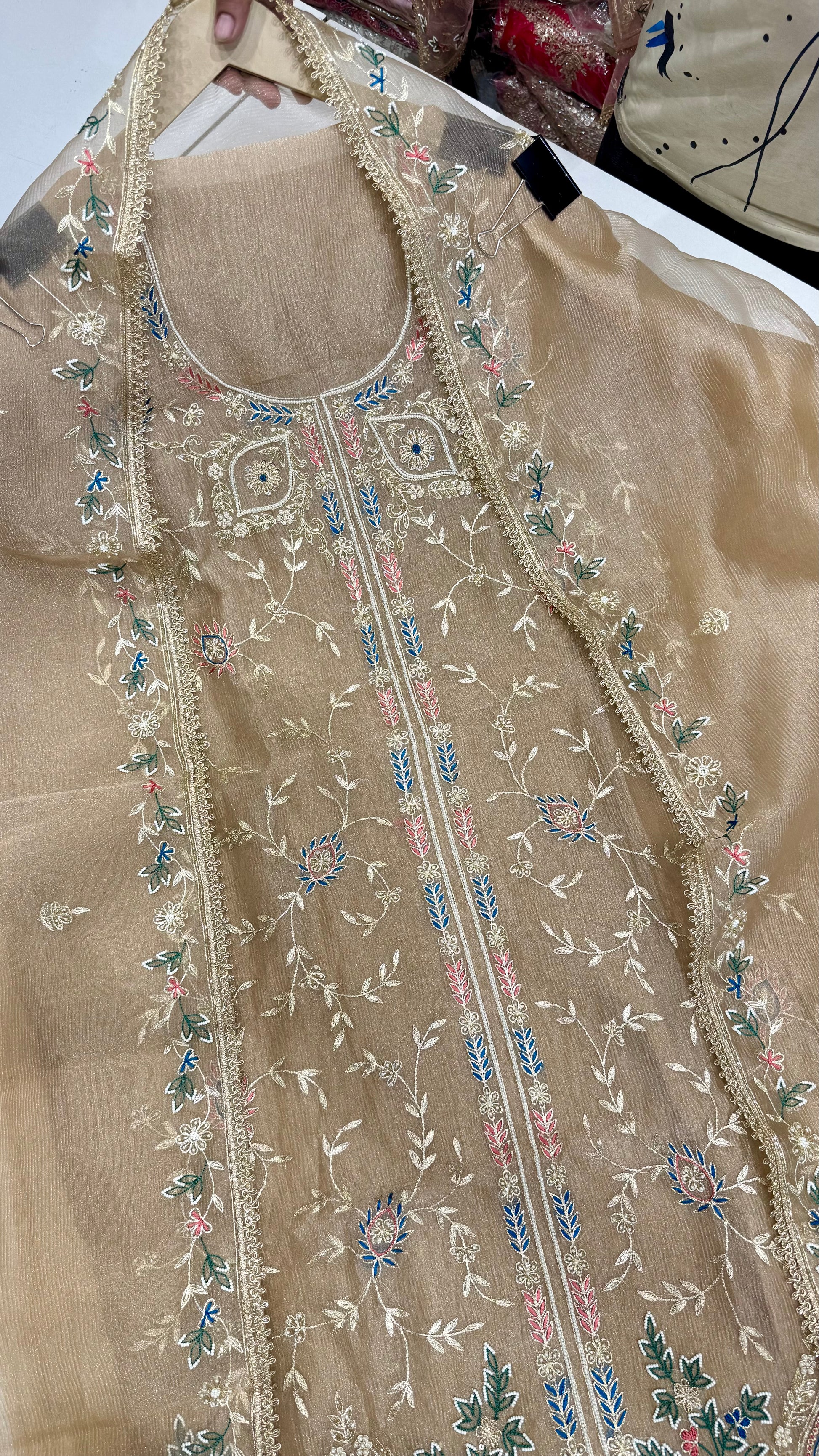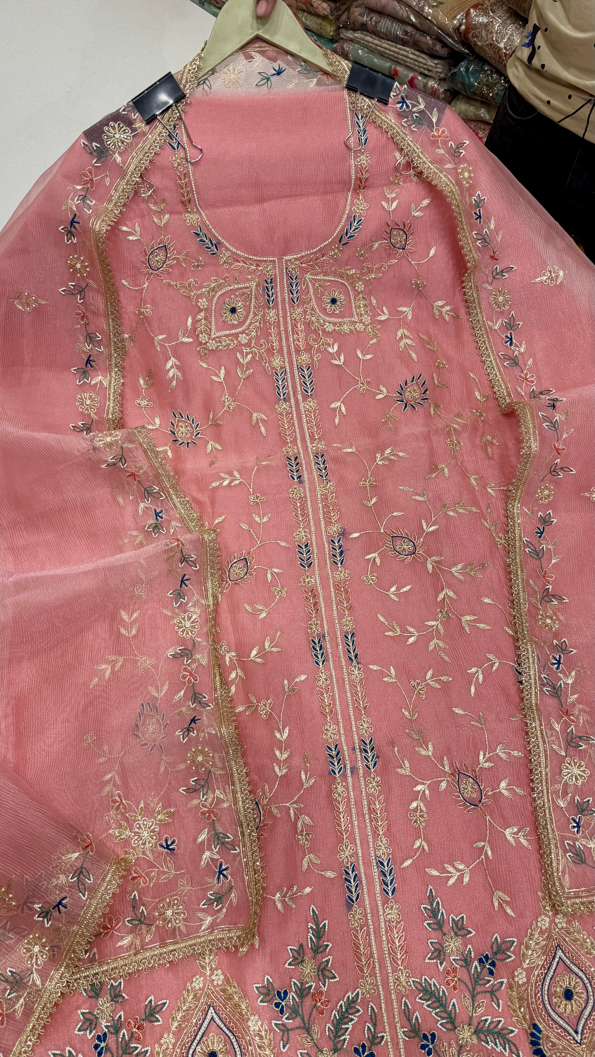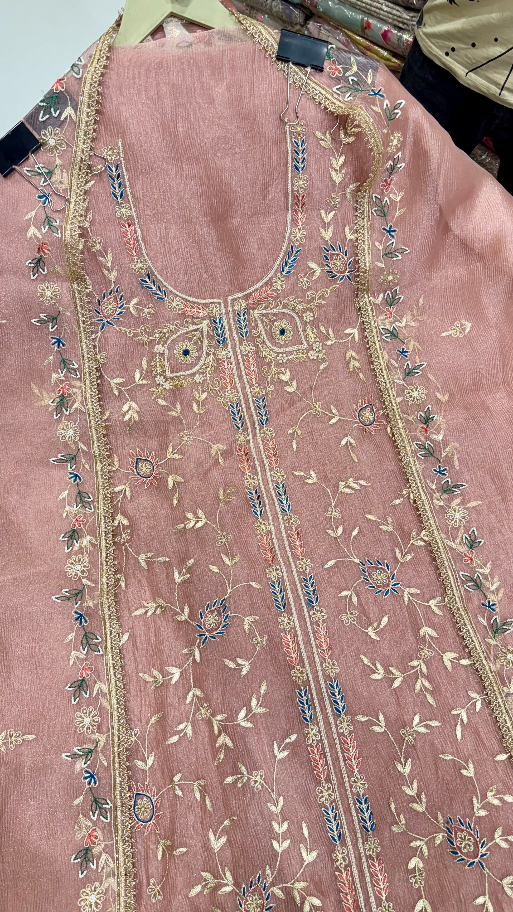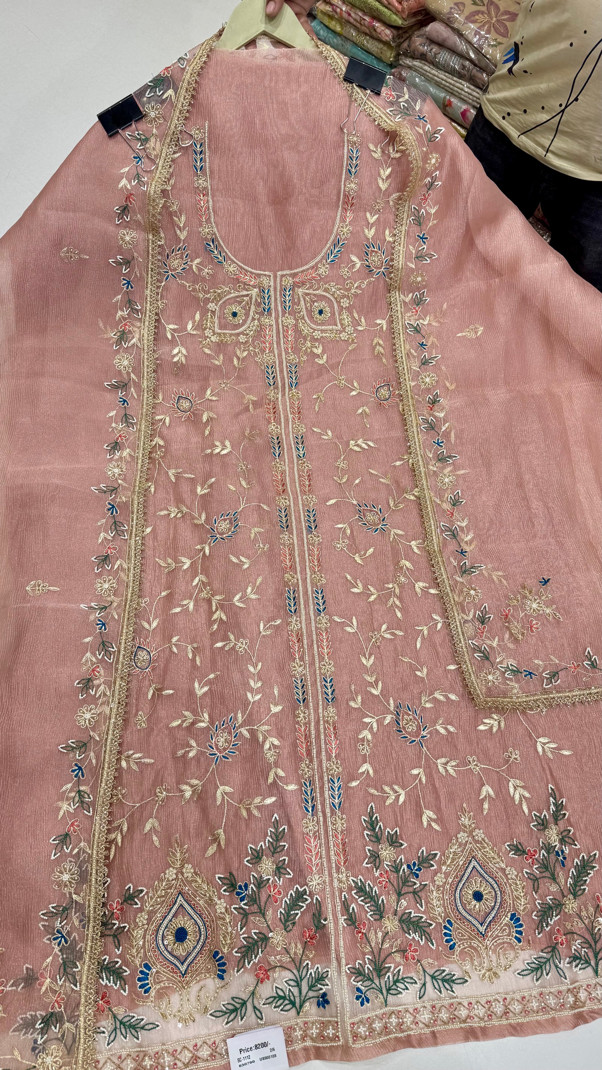 Unstitched Pure Crush Organza Zardozi Hand Embroidered Suit with Dupatta