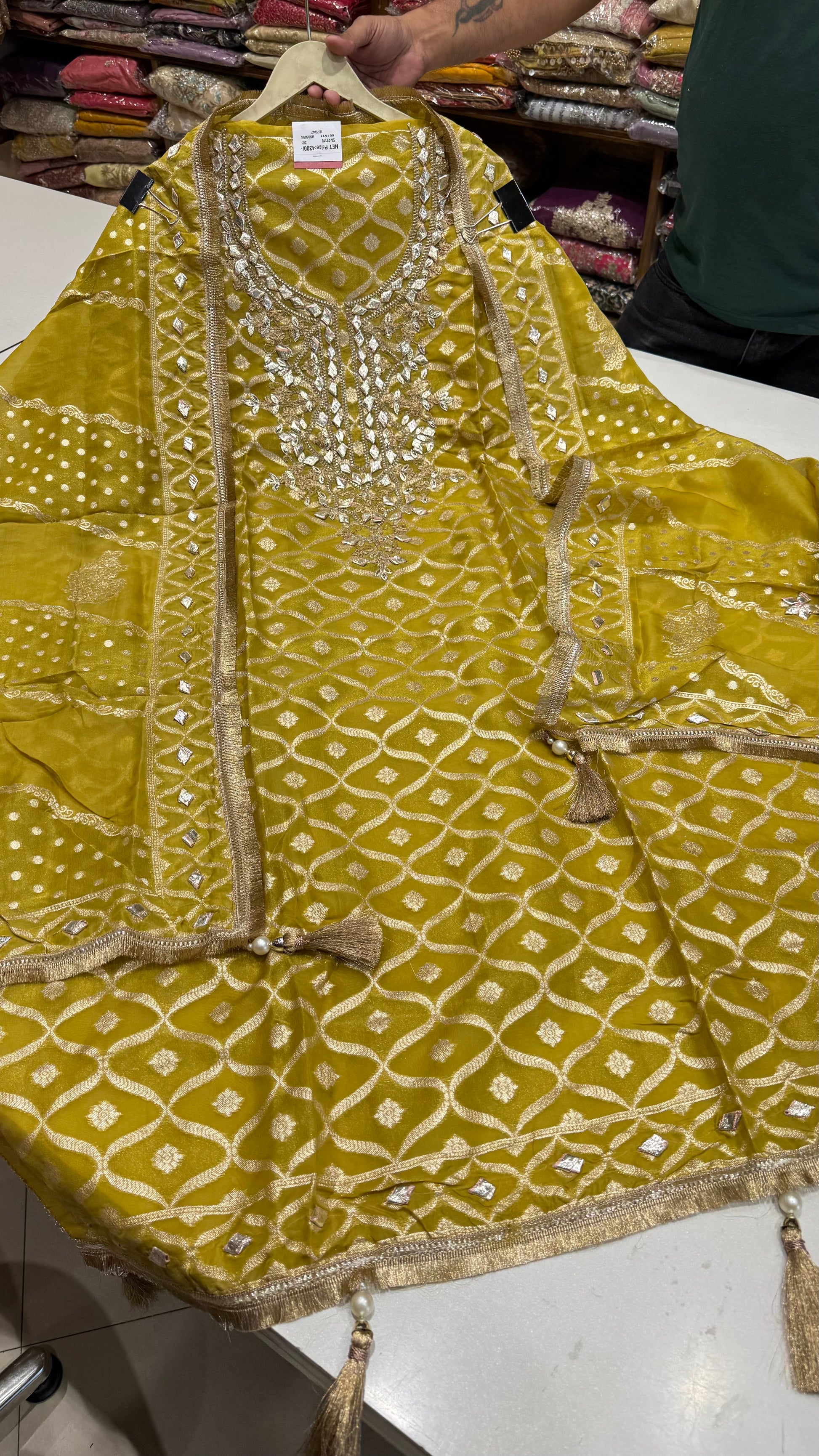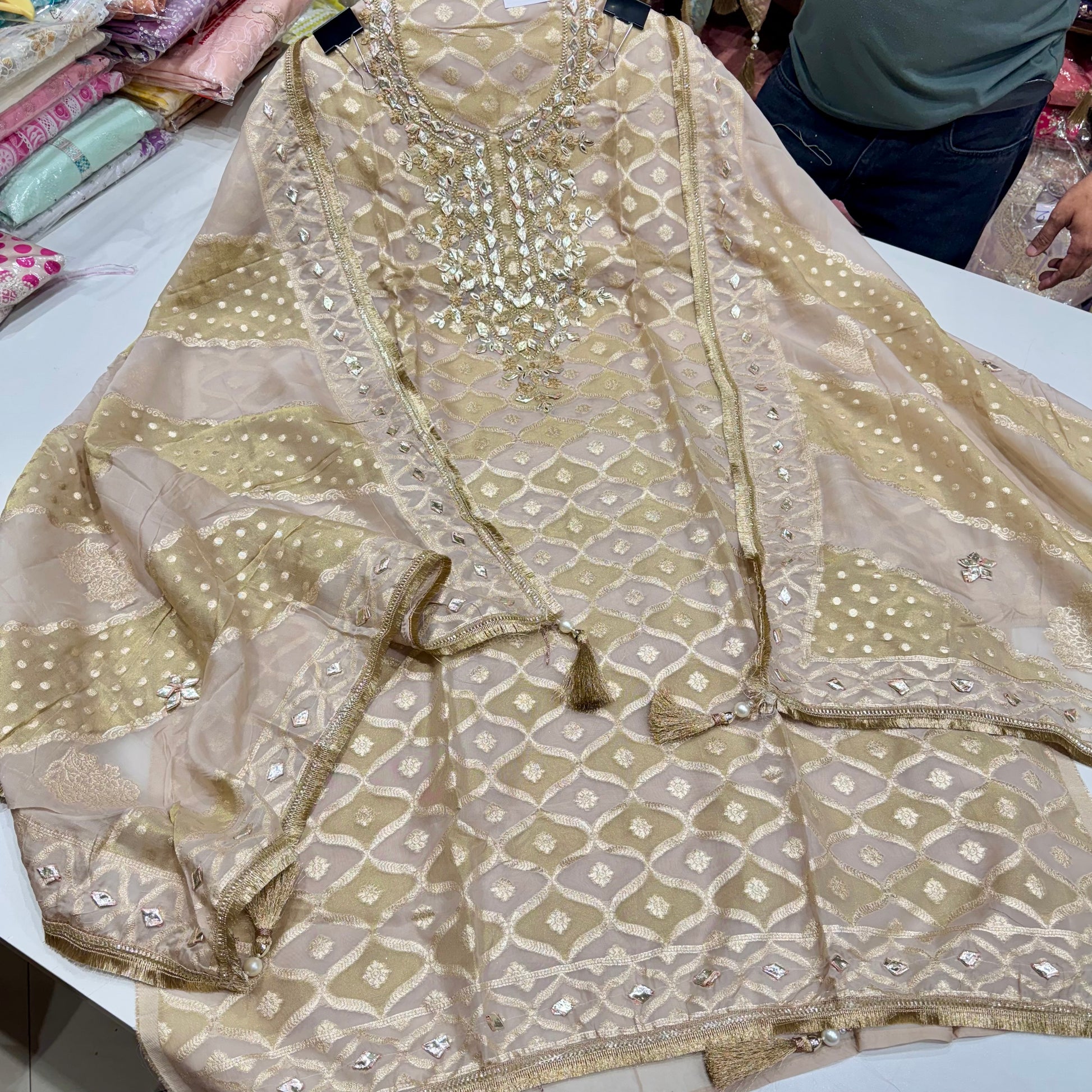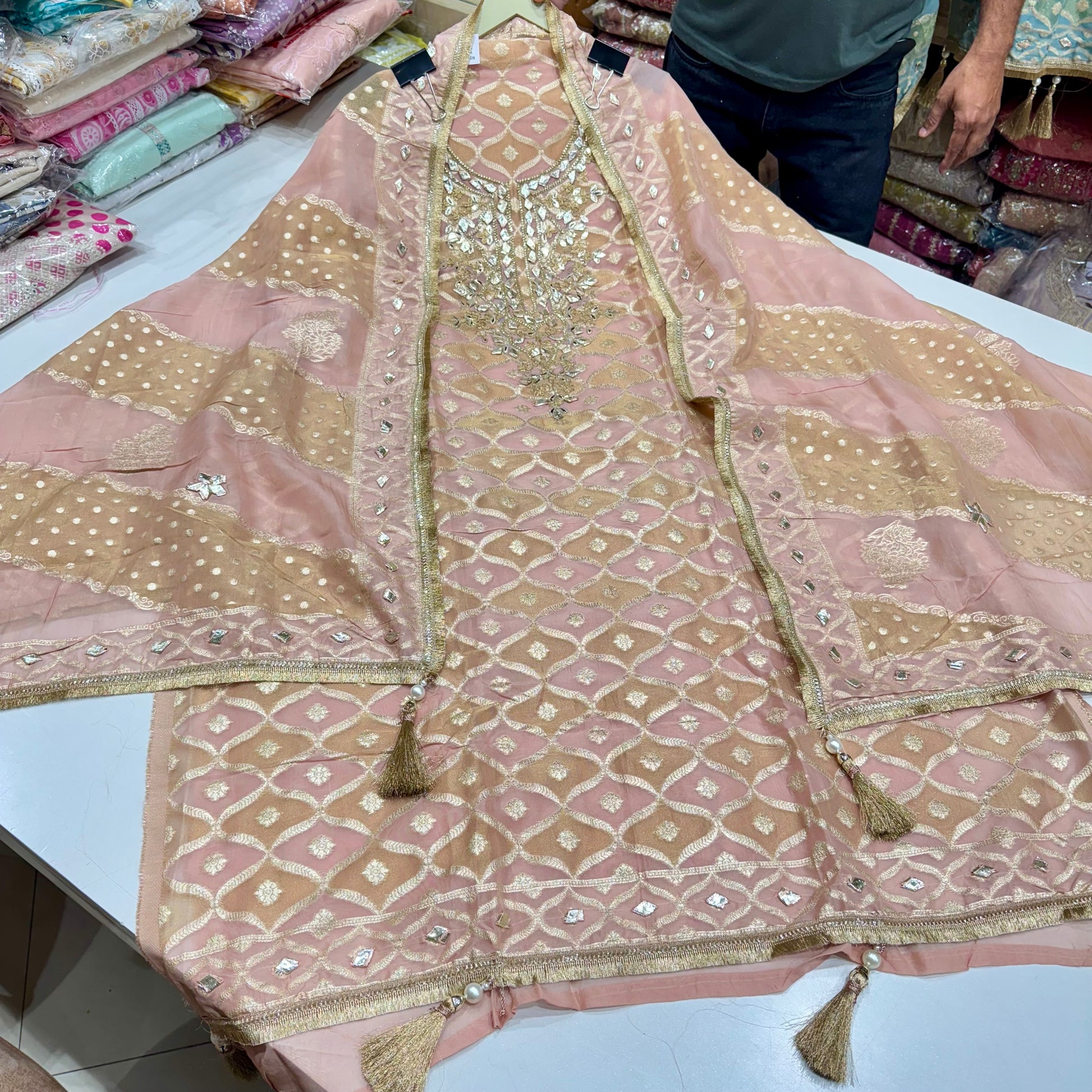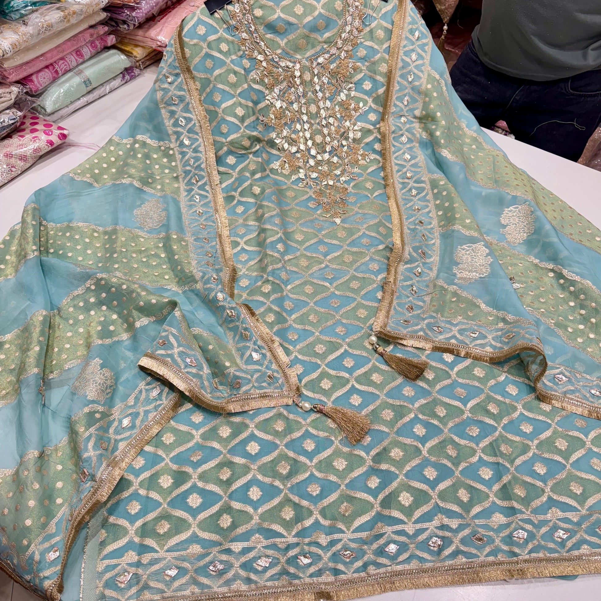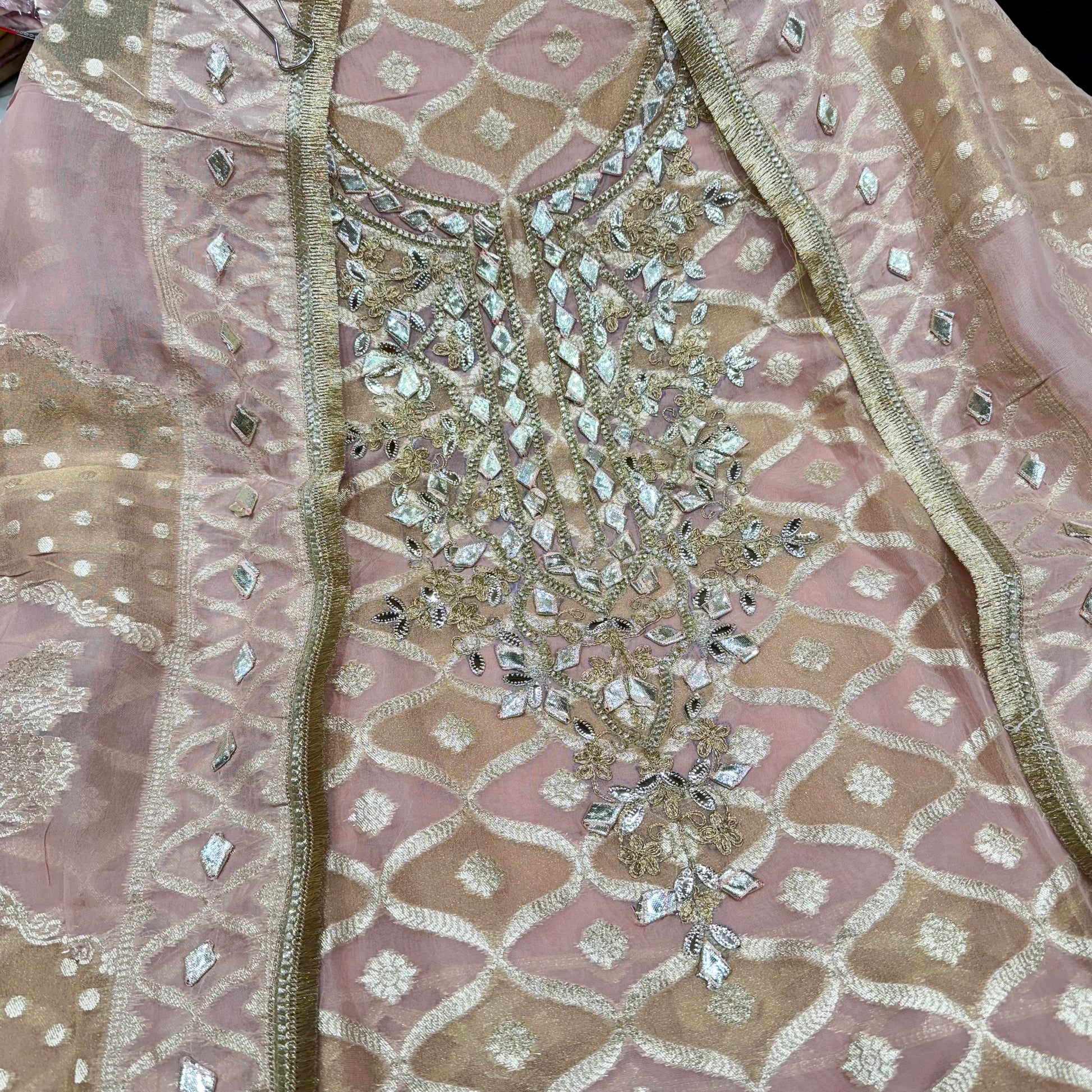 Luxury Banarasi Tissue Unstitched Suit Set – Gota Patti Glam with Statement Dupatta & Silk Bottom (2.5m)