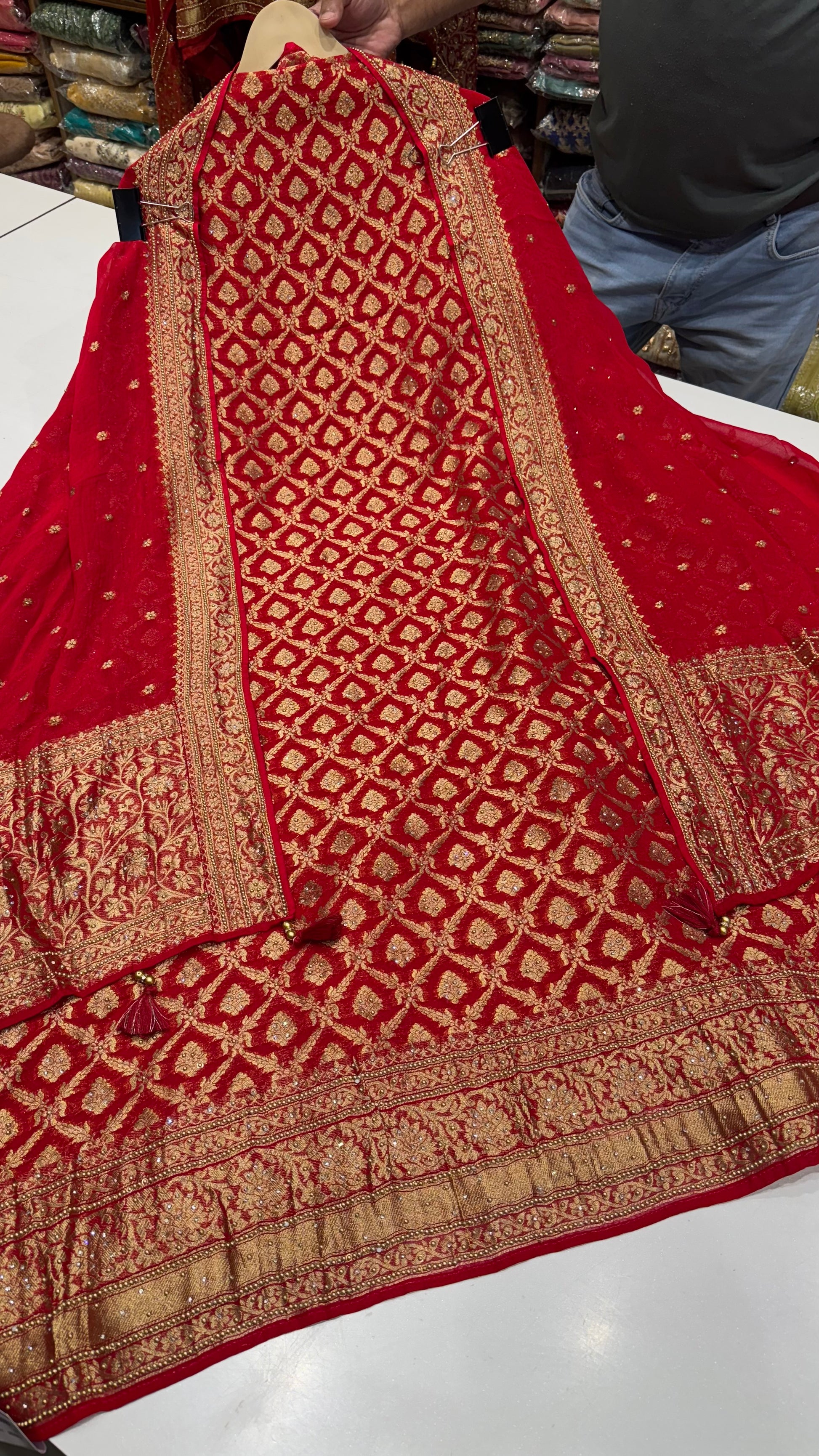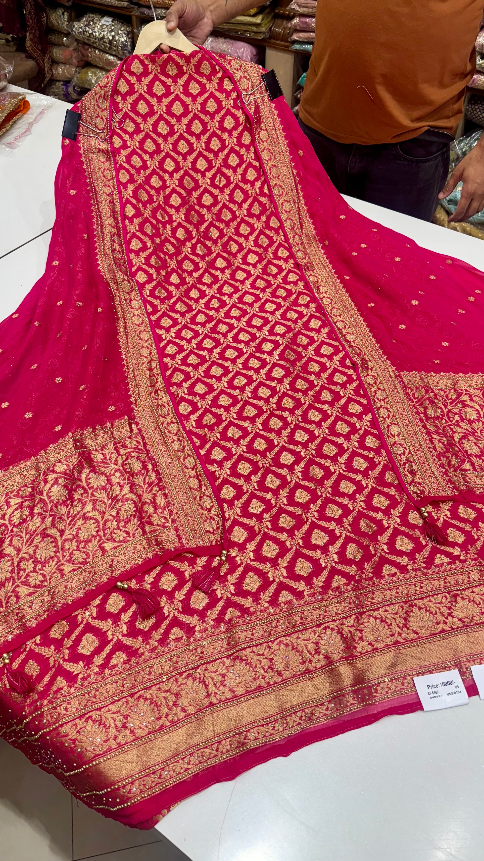 - Dupatta Fabric: Matching Pure Mysore Georgette with all-over traditional handloom weaving and elegant gold zari tassels